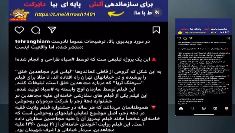 در بحبوحه جنگافروزی خامنهای در منطقه و موجسواری امام جمعهها و دستگاه تبلیغاتی رژیم بر روی فجایع غزه همراه با لاف و گزاف و قدرتنمایی، صحنهسازی حیرتانگیز حکومت آخوندی با تصاویر ساختگی از حضور زنان مجاهد خلق با یونیفرم مشابه ارتش آزادیبخش در خیابانهای تهران در حال توزیع تراکتهایی راجع به بازپخش فیلم «سرهنگ ثریا»، بهنحوی شگفت انگیز، خبرساز شده است. این فیلم قبلاً به دستور خامنهای ساخته شده بود و در بحبوحهٔ قیام در دهه زجر ۱۴۰۱ رونمایی شد.