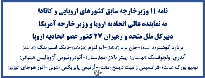نامه سرگشاده به نماینده عالی اتحادیه اروپا و وزیر امور خارجه آمریکا