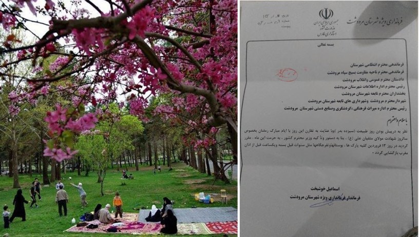 گفتنی است در روزهای اخیر خبری بهنقل از خبرگزاری صدا و سیمای رژیم روایت شده بود که بر اساس آن، از قول وزارت کشور اعلام شده بود: «با توجه به در پیش بودن روز طبیعت و همزمانی آن با ایام ماه مبارک رمضان بهویژه سالروز شهادت مولای متقیان حضرت علی (علیهالسلام) و حرمت این ماه مقرر شده در روز ۱۳ فروردین همه پارکها، بوستانها و تفرجگاهها مثل سنوات قبل که مصادف با ماه مبارک رمضان بود بسته است و یک ساعت قبل از اذان مغرب بازگشایی شود» (؟!).
