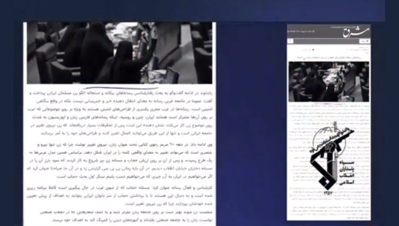 رسانه حکومتی مشرق وابسته به اطلاعات سپاه پاسداران روز ۹اردیبهشت ۱۴۰۳ بهنقل از یکی از کارشناسان امنیتی رژیم بهنام پاشاوند در مورد استحالهٔ الگوی زن مسلمان ایرانی نوشت: