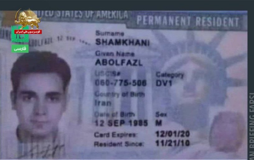 در جریان جنگ و درگیری باندهای حکومتی در آستانه انتخابات ریاستجمهوری رژیم، تصویر گرین کارت ابوالفضل شمخانی پسر پاسدار علی شمخانی دبیر سابق شورای عالی امنیت توسط باند رقیب افشا شد.