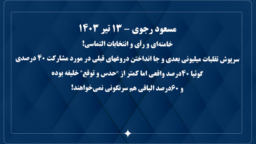مسعود رجوی – ۱۳ تیر ۱۴۰۳: خامنهای و رأی و انتخابات التماسی!
