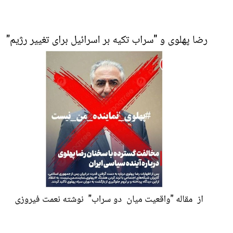 «تاریخ معاصر ایران و جهان شاهد ظهور و سقوط شخصیتها و جریانهای سیاسیای بوده است که برای رسیدن به قدرت، به جای تکیه بر اراده ملی ، به مهره استعمار بدل گشته اند.در آن روی سکه «عمق استراتژیک» فاشیسم آخوندی ، بقایای رژیم سلطنتی نیز به سرابی مشابه دل بستهاند. این محفل امیدوار است که با تکیه بر حمایت خارجی، بهویژه اسرائیل ، بتواند دوباره به تاج و تخت پدری برسد و «رژیم چنج» کند!