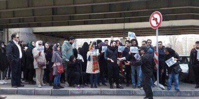 تجمع اعتراضی در حمایت از آرش صادقی در مقابل زندان اوین