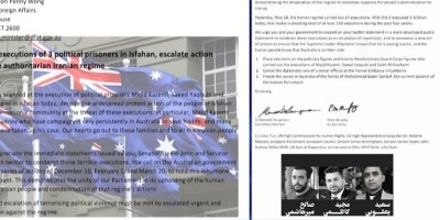 اخبار نامه کمیته حامیان استرالیایی به وزیر خارجه این کشور و خواستار اقدام فوری برای حسابرسی از رژیم ایران مِی 22, 2023