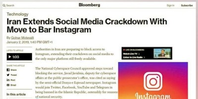خبرگزاری بلومبرگ ازتصمیم رژیم ایران برای بستن اینستاگرام خبرداد