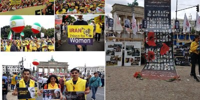 تظاهرات ایرانیان در میدان تاریخی براندنبورگ برلین برای آزادی و دمکراسی در ایران + فیلم وعکس