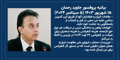 بیانیه پروفسور جاوید رحمان- ۱۵ شهریور ۱۴۰۳ (۵ سپتامبر ۲۰۲۴)