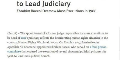واکنش دیدبان حقوق بشر به انتصاب جلاد ۶۷ابراهیم رئیسی به ریاست قوه قضاییه رژیم آخوندی