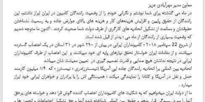 رویدادها نامه اتحادیه رانندگان جاده ای آمریکا(تیمسترز) در حمایت از#اعتصاب_سراسری_کامیونداران ایران اکتبر 4, 2018 — 0 Comments