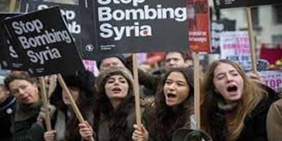 تصاویری از تظاهرات مردمی بر علیه جنایت جنگی رژیم اسد و متحدانش در شهر حلب سوریه