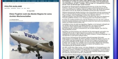 گزارش روزنامه آلمانی دی ولت از افشاگری جدید شورای ملی مقاومت ایران درباره اداره شرکت هواپیمایی ملی ایران توسط سپاه پاسداران