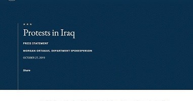 بیانیه مطبوعاتی سخنگوی وزارت خارجه آمریکا مورگان اورتگاس در مورد اعتراضات در عراق تاکید بر آزادی مطبوعات و هشدار به دولت عراق