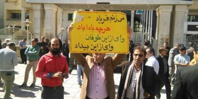 سومین روز تجمع اعتراضی معلمان و فرهنگیان یزد نسبت به عدم پرداخت ۱۰ماه حقوق خود مقابل ساختمان دادگستری رژیم چهارشنبه۴بهمن