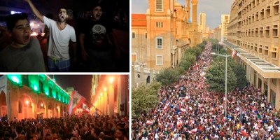 قیام مردم لبنان علیه نابسامانی اقتصادی و سیاسی در این کشور و دخالت های رژیم ایران وتهدیدسعد حریری نخست وزیر لبنان به استعفا + فیلم وعکس
