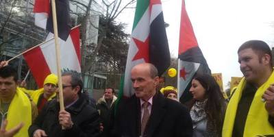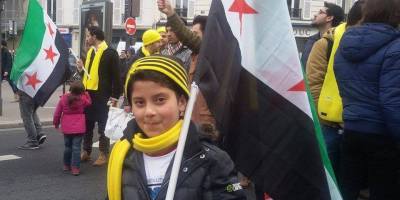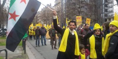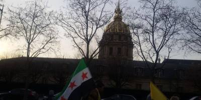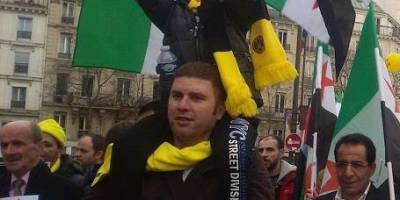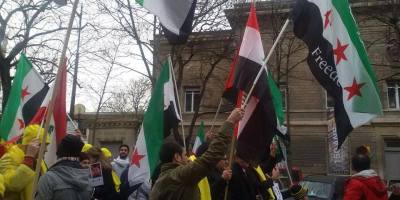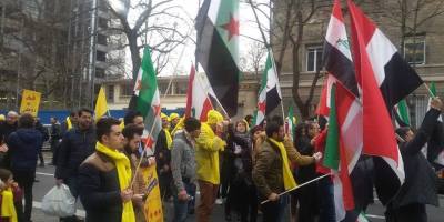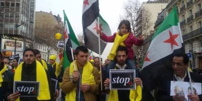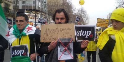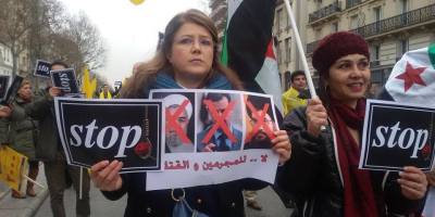 همبستگی آزادیخواهان سوری با ایرانیان آزاده در تظاهرات » نه به روحانی » در پاریس. ۸ بهمن ۹۴
