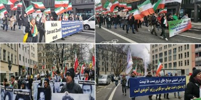 تظاهرات ایرانیان در برابر کنفرانس امنیتی مونیخ در اعتراض به حضور وزیر خارجه رژیم جواد ظریف + فیلم وعکس