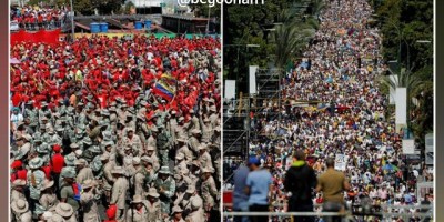 زور آزمایی خوان گوایدو و نیکلاس مادورو در کاراکاس پایتخت ونزوئلا